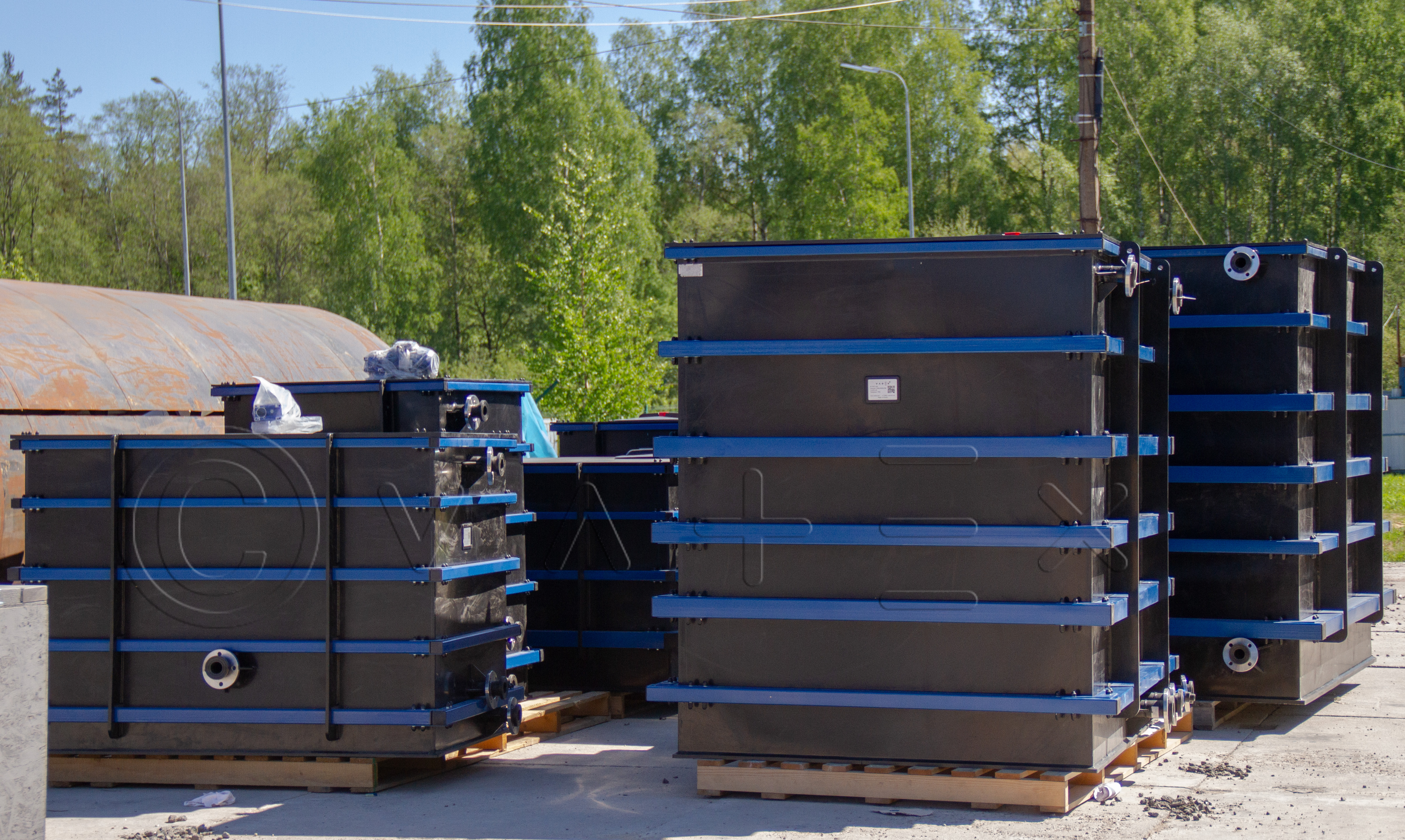 Мы предоставляем возможность покупки сборной на месте прямоугольной емкости любого габарита, конструктива. Вам не потребуется демонтировать стены, крышу здания для установки. Все элементы конструкции умещаются во входные проемы, устанавливаются сразу на рабочей площадке.